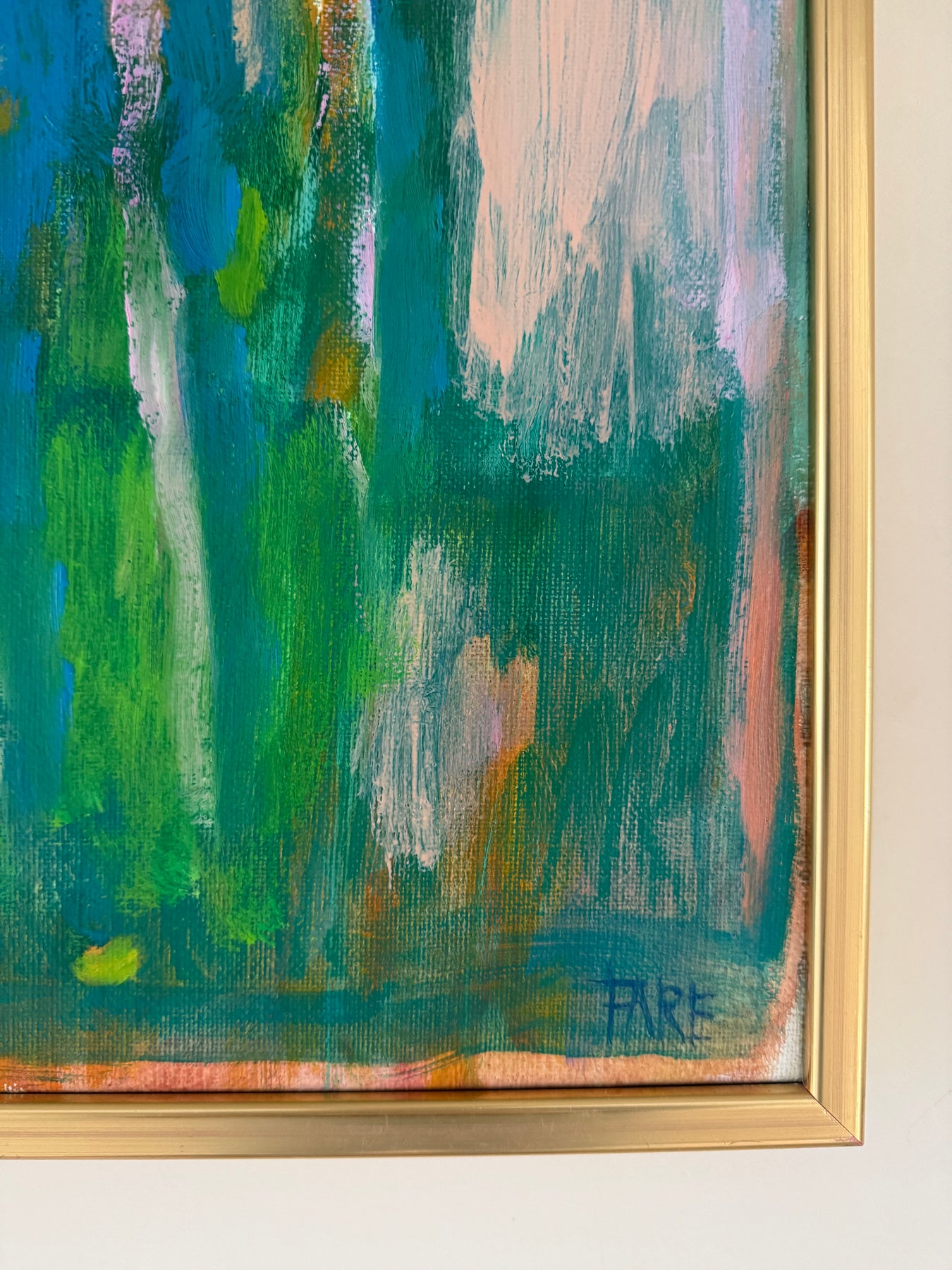 Fare frequently returned to a palette of blues and greens in his landscapes, using them to structure space and atmosphere rather than describe it directly. Here, those cooler tones are balanced by warmer notes that give the surface depth without disrupting its cohesion.