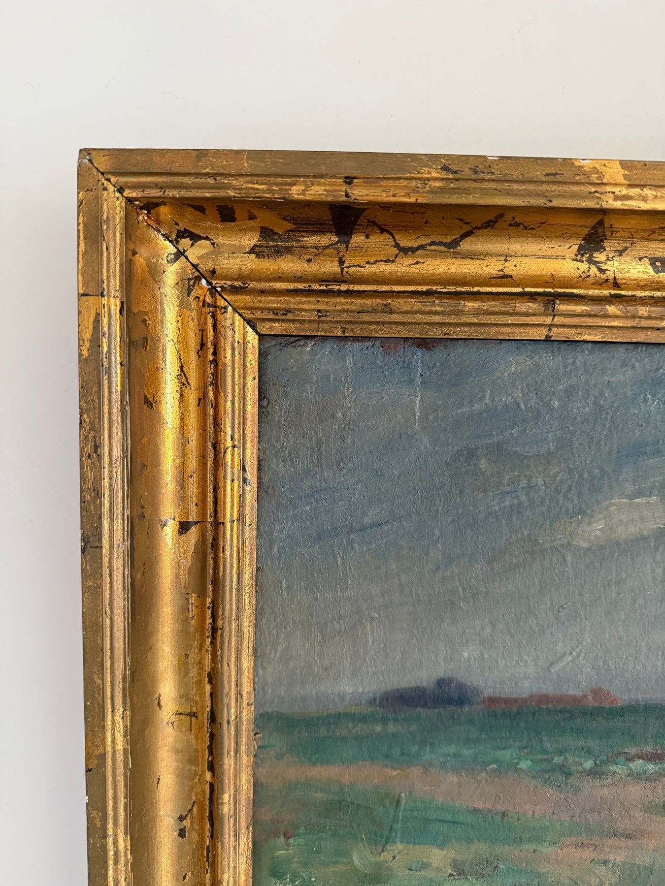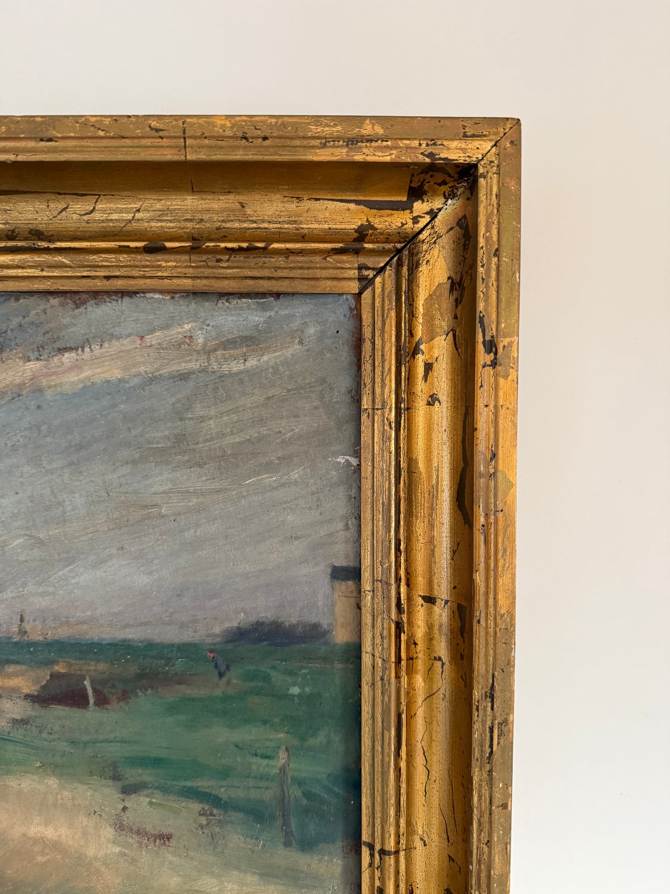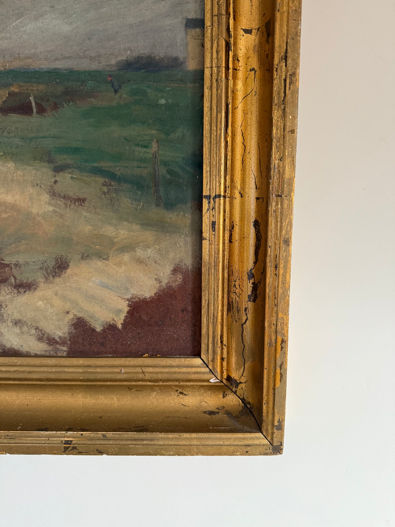 Oil on board, presented in a gilt frame with surface wear consistent with age.