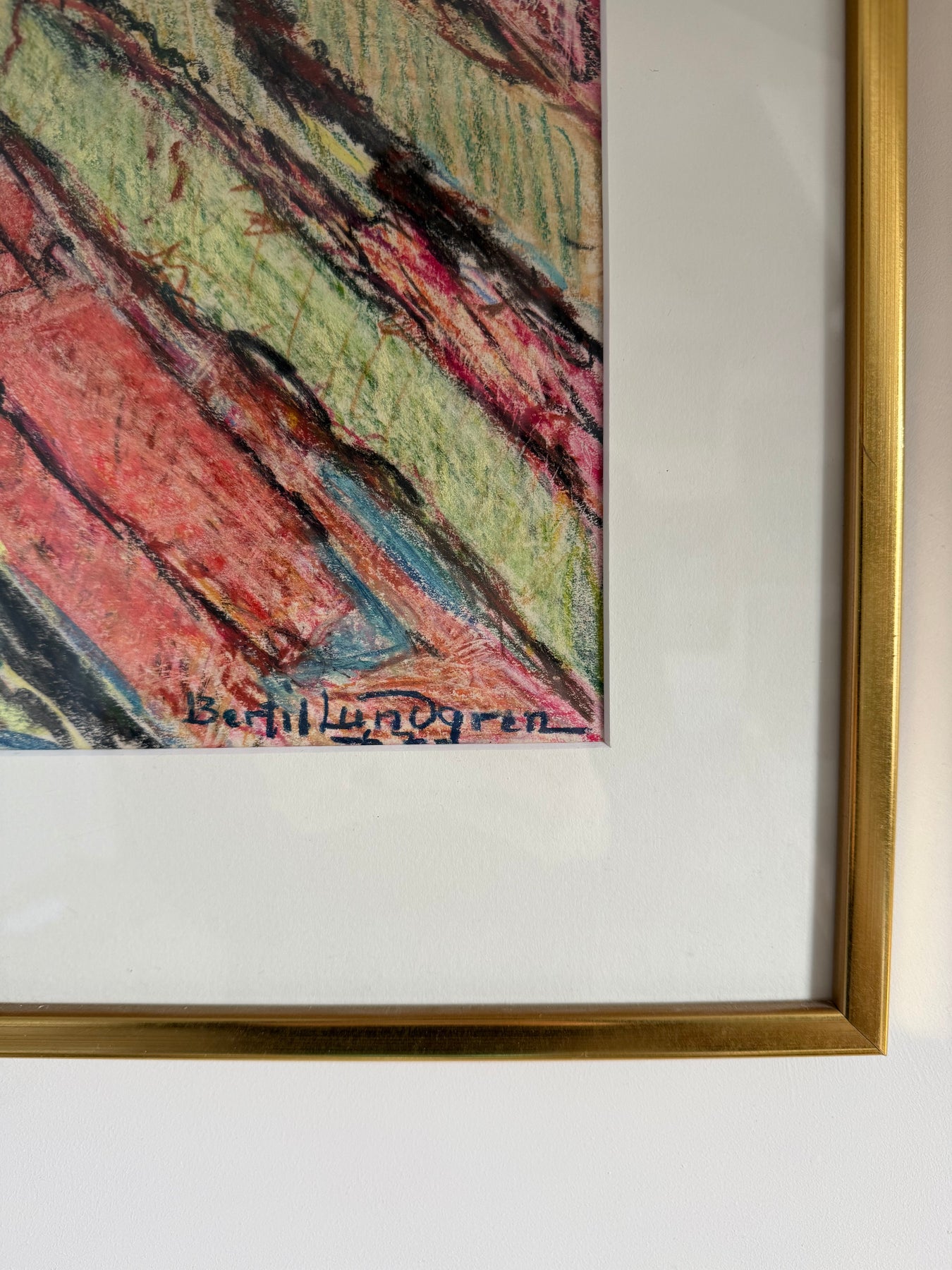 This is a vivid abstract composition in Lundgren’s distinctive language of colour and movement. Working outside Sweden’s central art scene, he developed a quietly independent practice rooted in a deep attention to light and landscape. Even in his more abstract works, like this one, colour carries the structure — layered, rhythmic, and tactile. Lundgren’s approach, shaped by his affinity for the Baltic coast and its shifting atmospheres, lends the piece a lyrical certainty. A fine example of his ability to let colour do the work of form.