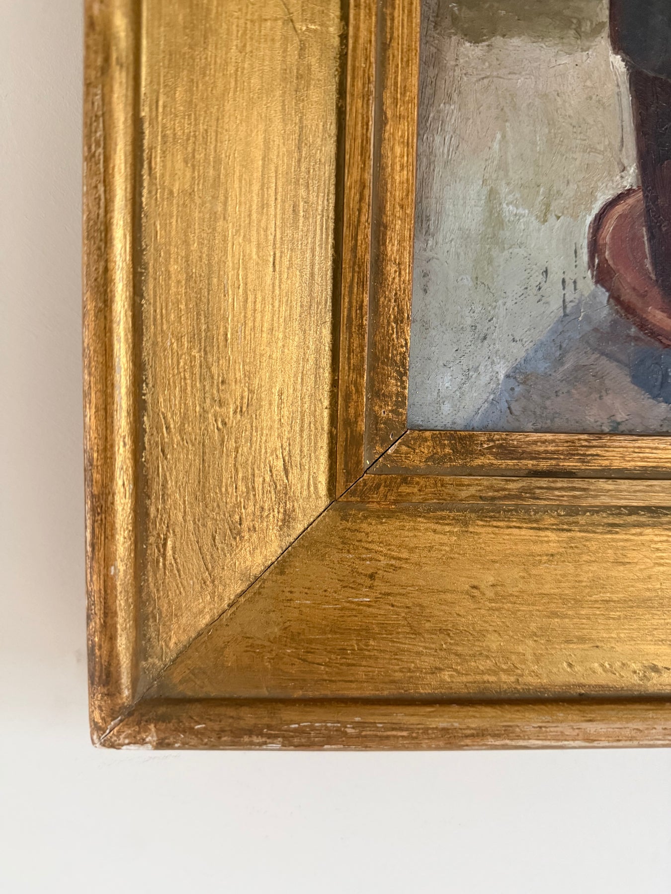 Presented in its original gilt frame, showing visible wear and marks consistent with age.