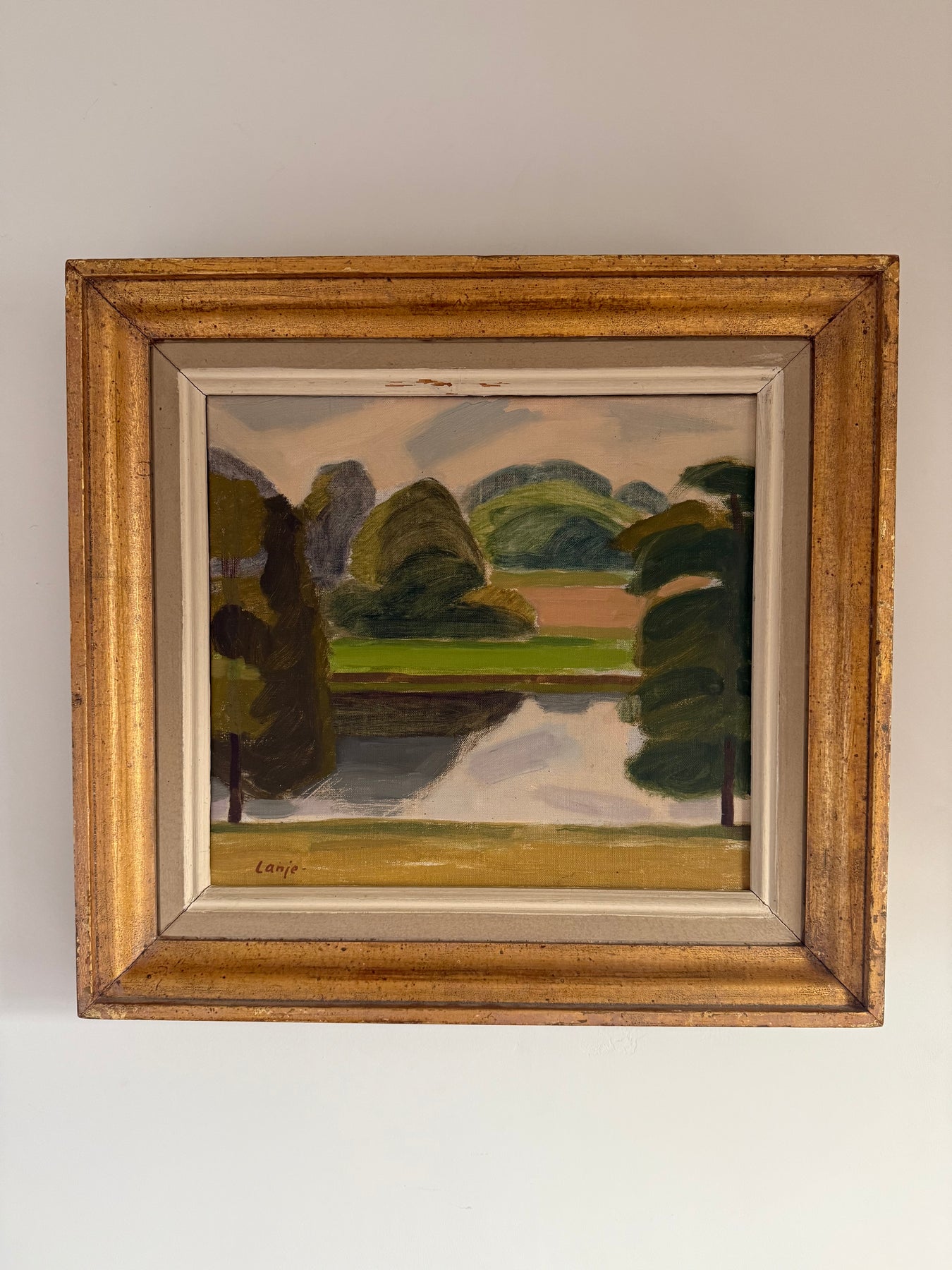 A vintage oil on canvas landscape painting by Signe Lundqvist-Lanje (1912-2004).